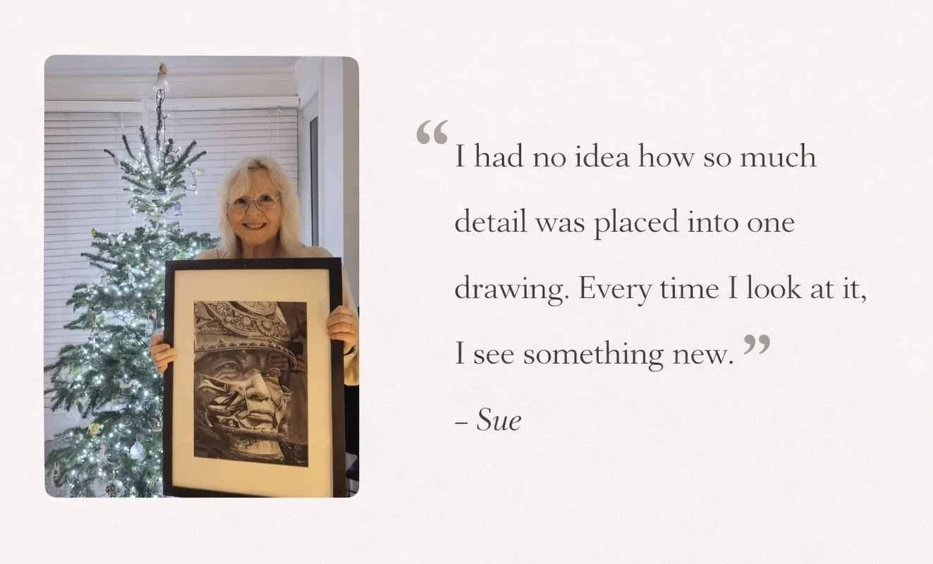 I am a UK-based graphite and charcoal portrait artist specialising in highly detailed portraiture.